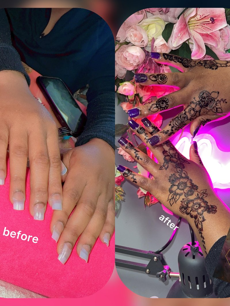 "Unleash your inner glam at H&S Nails! 💅✨ Your ultimate destination for flawless nail perfection.": "Passionate nail technician specializing in unique nail art and henna designs. Book your appointment now for creative and beautiful nails! #NailArtist #HennaDesigns"
